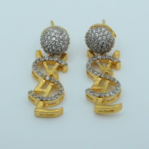 Stylish Initial Design Zircon Earrings – 24K Gold Plated