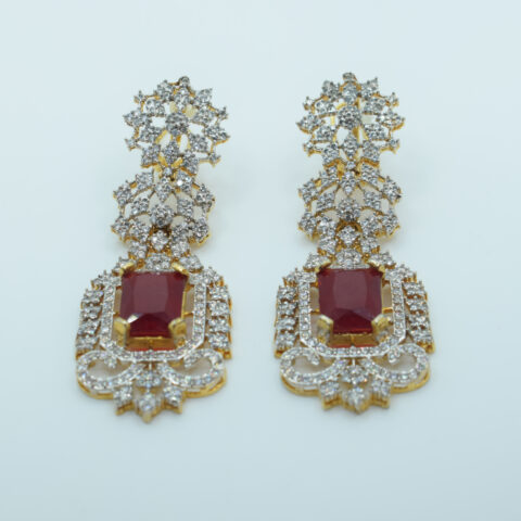 Ruby Zircon Drop Earrings – 24K Gold Plated