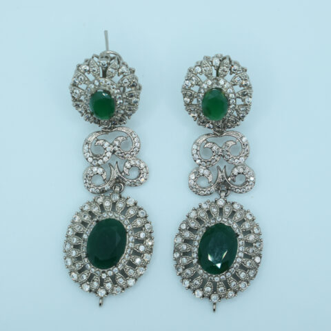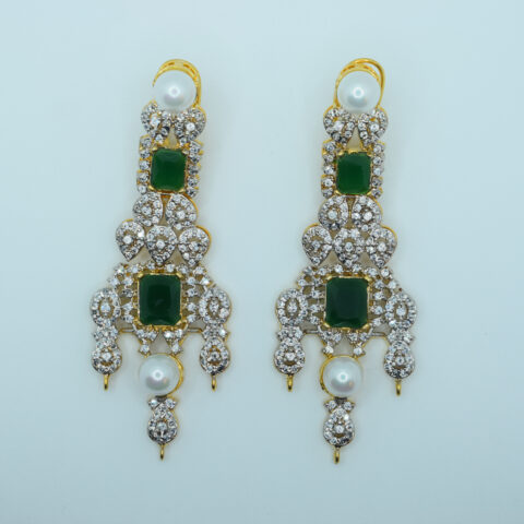 Emerald Green & Zircon Long Earrings – 24K Gold Plated