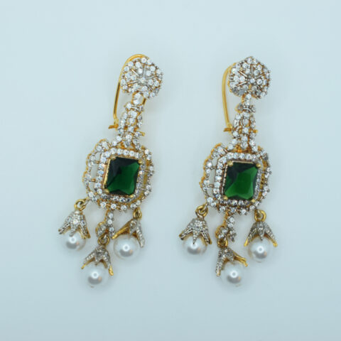 Emerald Pearl Drop Earrings with Zircons – 24K Gold Plated