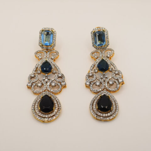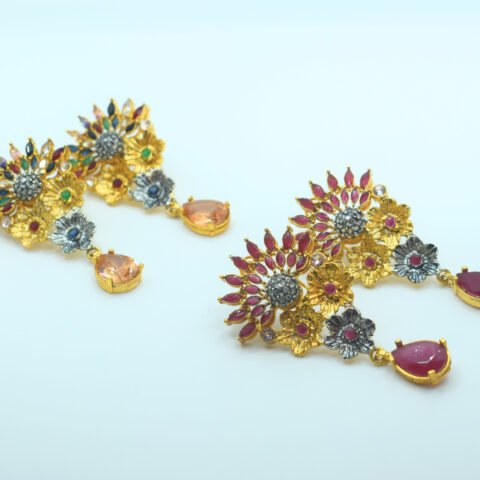 Zircon & Gemstone Drop Earrings – 24K Gold Plated