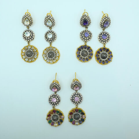 Round Drop Earrings with Zircon & Colored Stones – 24K Gold Plated
