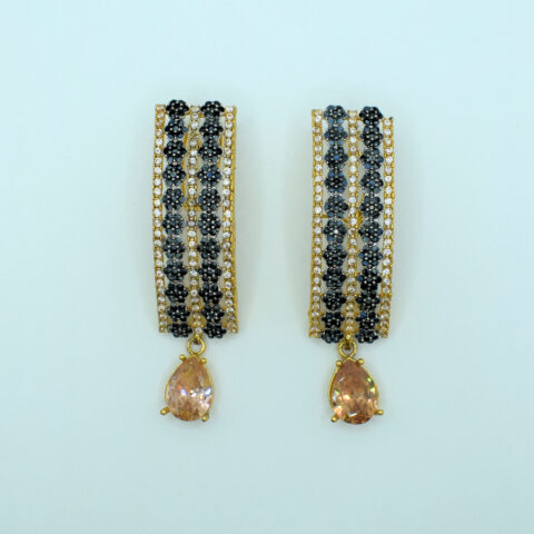 Black Zircon Earrings with Champagne Drops – 24K Gold Plated