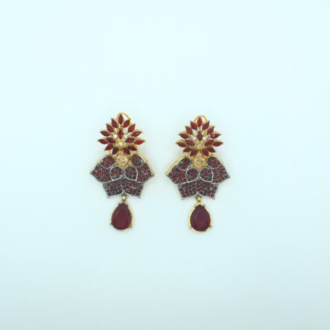 Ruby & Zircon Earrings with Tika – 24K Gold Plated
