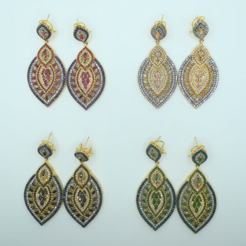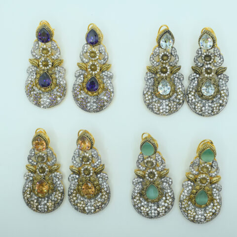 Multi-Color & Zircon Statement Earrings Set – 24K Gold Plated