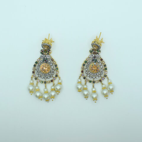 Amber Zircon Drop Earrings with Pearl & Zircons – 24K Gold Plated