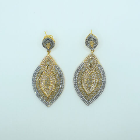 Zircon Kundan Earrings with Tika – 24K Gold Plated