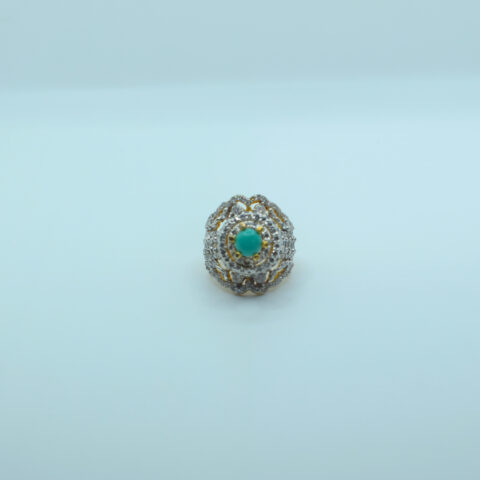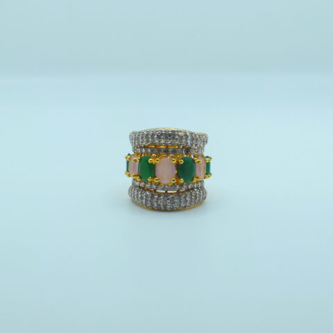 24k Gold Plated Statement Ring with Pistachio & Emerald Stones