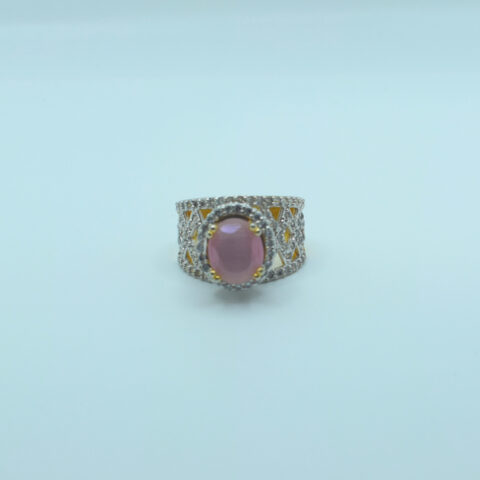 Pink Oval Stone Ring – 24k Gold Plated with Zircon Detailing