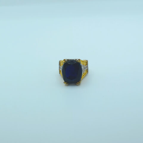 Blue Zircon Ring – 24k Gold Plated Adjustable Design