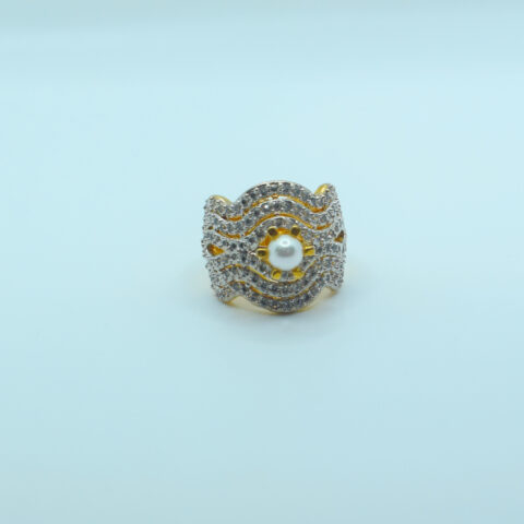 Regal Pearl Glow Ring – 24K Gold Plated with Zircon Detailing