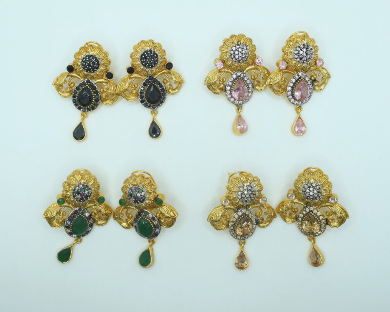 Pair 4: Champagne-gold toned stones with floral zircon motifs for a regal look.