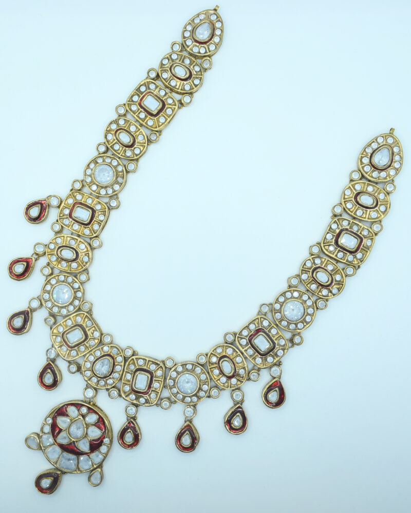 Heritage Polki Kundan Necklace with Red Enamel Accents