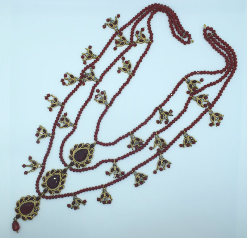 Be the first to review “Peach Beaded Multi-Layer Rani Haar Necklace – 24K Gold Plated”