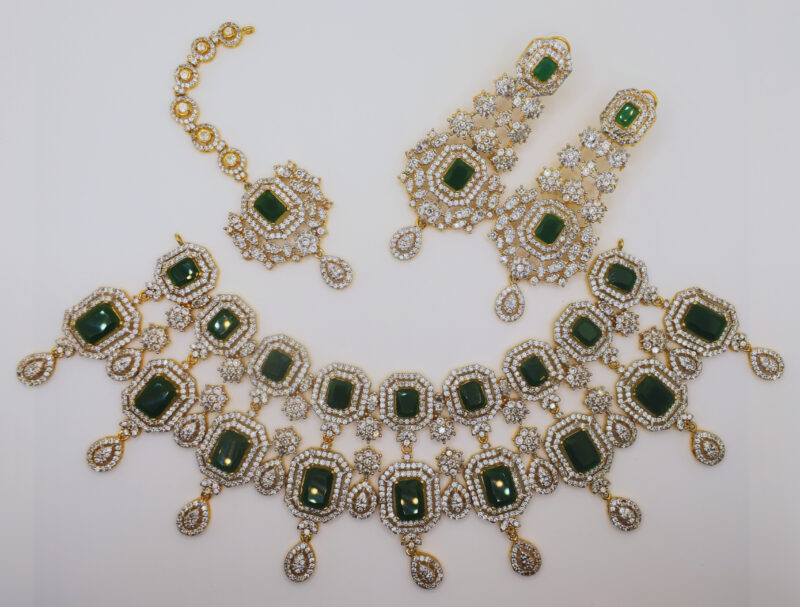 Emerald Green Kundan Bridal Jewelry Set with Zircon – 24K Gold Plated