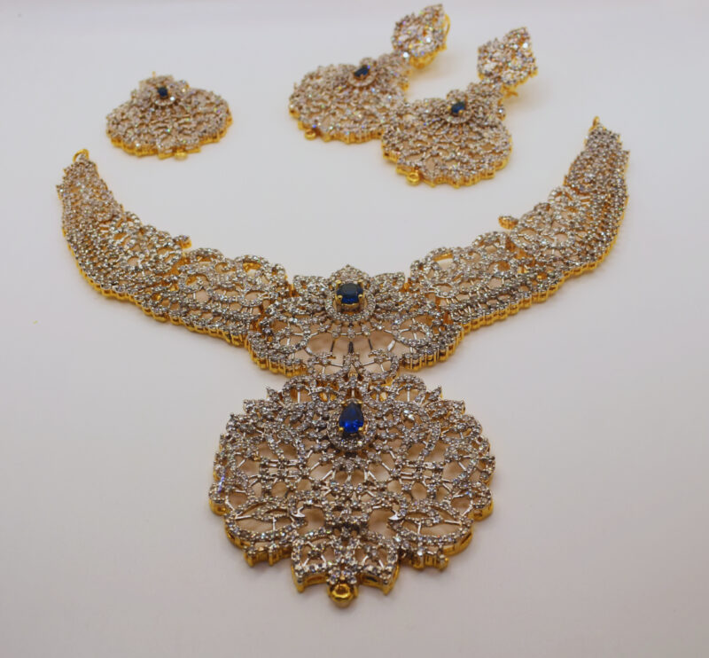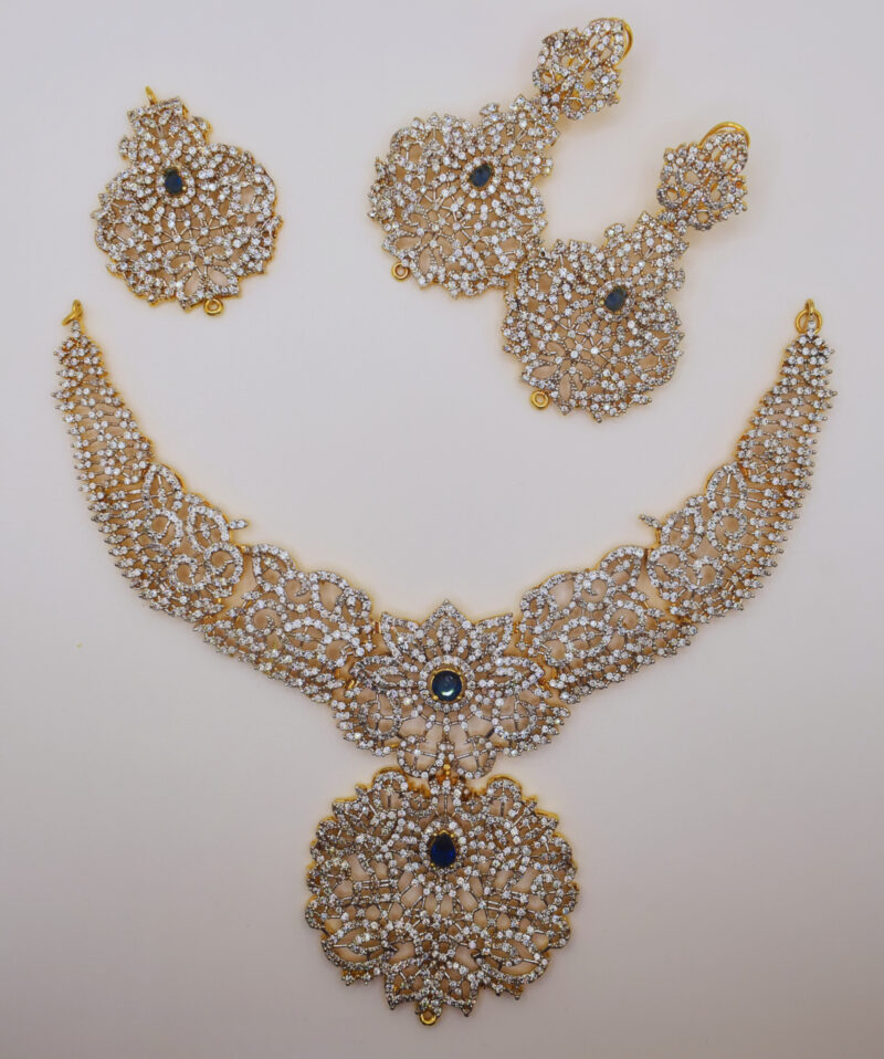This bridal jewelry set symbolizes grace, tradition, and prosperity, making it a perfect choice for weddings, festive occasions, and cultural celebrations.