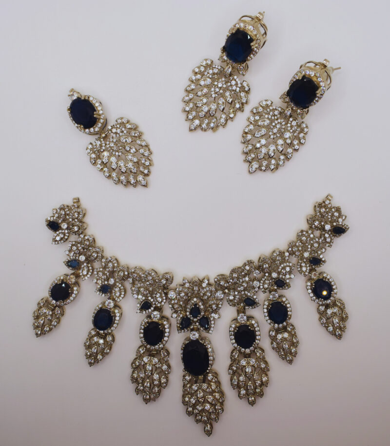Add to cartSapphire Blue Kundan Leaf-Motif Bridal Set – 24K Gold Plated