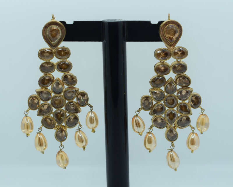 Amber Stone Kundan Earrings – 24K Gold Plated