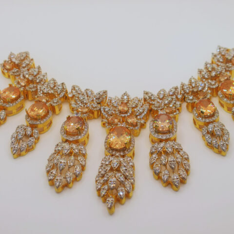 Elegant earrings in matching design, crafted to perfectly balance the grandeur of the necklaces. -