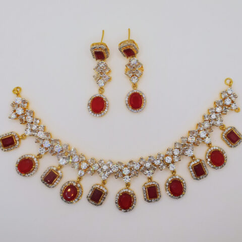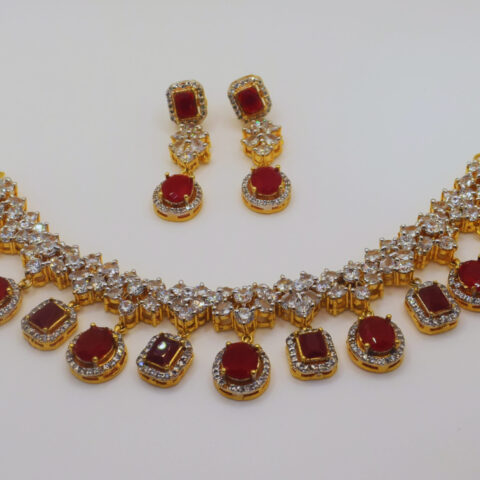 Add to cartTraditional Gold Bridal Jewelry Set – Red, Green, White Stone – 24K Gold Plated