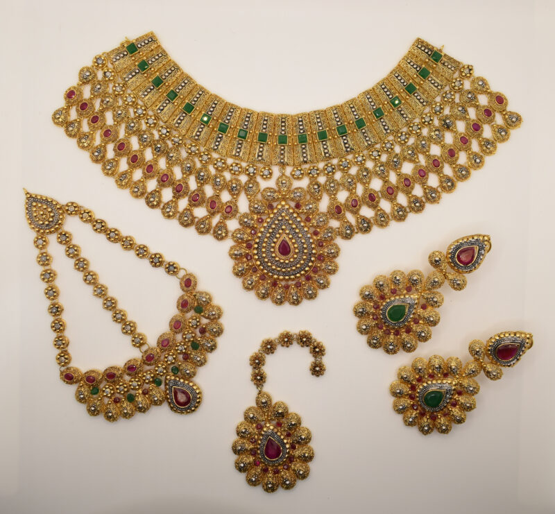 Traditional Gold Bridal Jewelry Set – Red, Green, White Stone – 24K Gold Plated