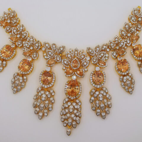 Golden Citrine Floral & Leaf Bridal Necklace – 24K Gold Plated