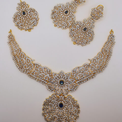 Golden Kundan Bridal Necklace with Zircon Accents – 24K Gold Plated