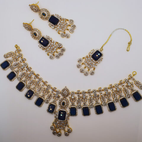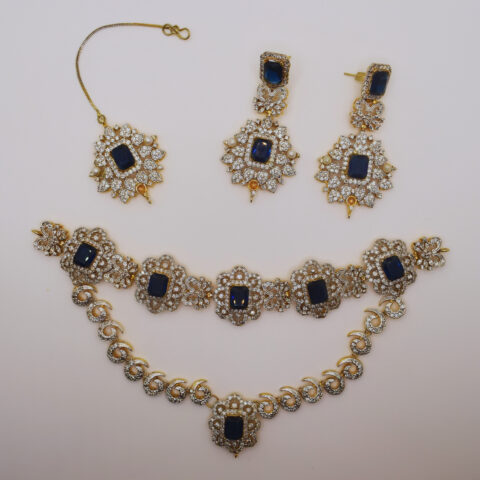Royal Sapphire Blue Kundan Bridal Set with Zircon – 24K Gold Plated