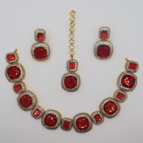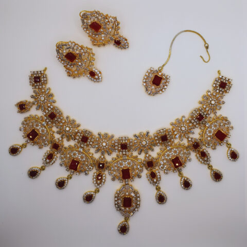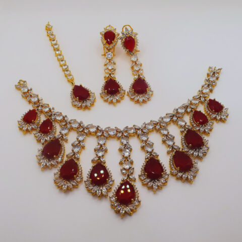 Ruby Bridal Set – 25K Handcrafted with White Zircon