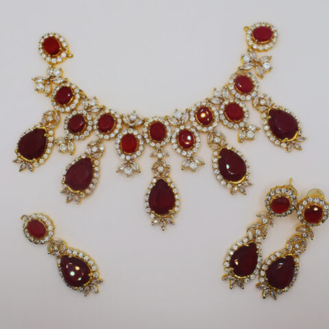 Ruby & Zircon Necklace Set with Earrings & Pendant – 24K Gold Plated